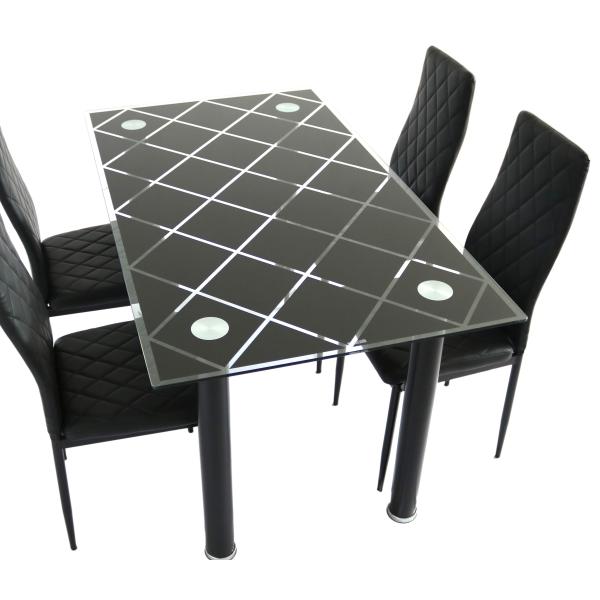 Modern Simple 140cm Black Tempered Glass Dining Table For 4pcs Chairs Images |
